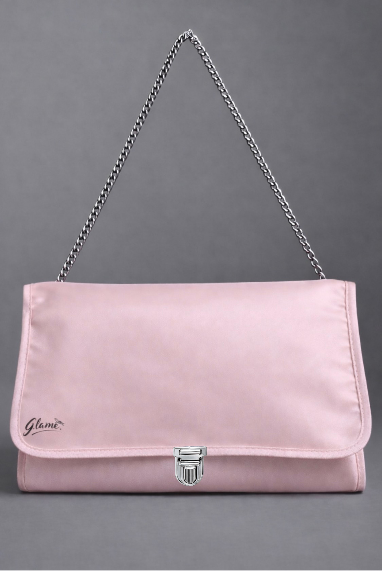 Pochette à 2 compartiments confectionnée en tissu nylon rose.
